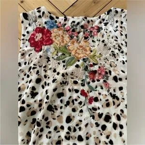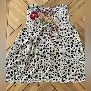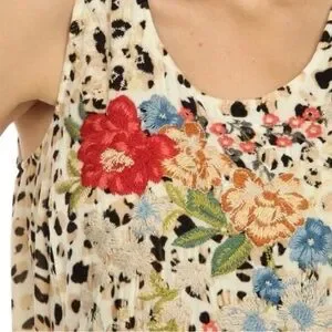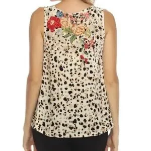 This stylish women's top features a vibrant floral embroidery on a chic leopard print background. Perfect for adding a pop of color to your wardrobe. Johnny Was JWLA Josephine Velvet Swing Tank Top