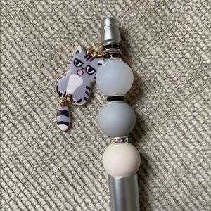 Grey Cat Charm Pen (Tail “wags”)