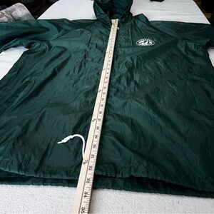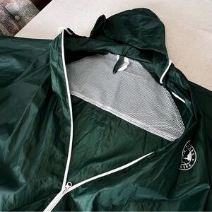 Stay stylish and protected with this green hooded windbreaker jacket. Perfect for any weather.