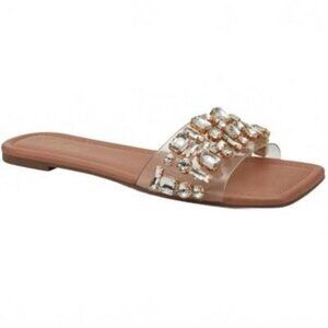 NEW Thalia Sodi Jillene Flat Slip On Slide Sandals Clear w/ Gemstone Accents 6.5