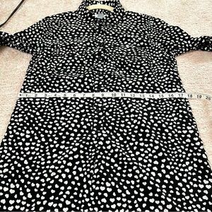 Like new black long sleeve collared shift dress with ditzy white heart print