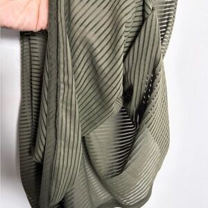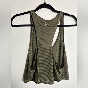 Lululemon sheer striped racerback tank in a versatile olive green. Lightweight and breathable with a relaxed, drapey fit — perfect for layering over a sports bra or bralette.