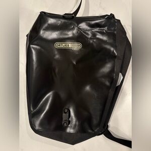 Classic rear bicycle pannier (20L) in black, bundled with the genuine Ortlieb Pannier Carrying System (backpack harness).