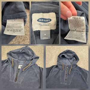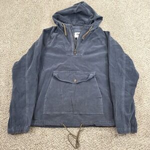 Old Navy Blue CORDUROY Anorak Jacket Adult Hooded M Pullover Pocket