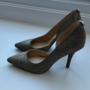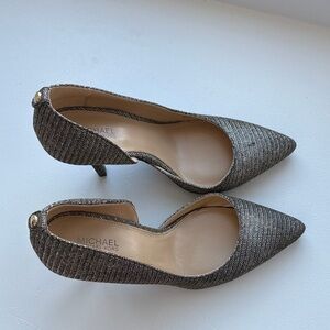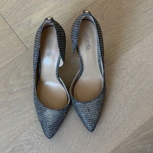 Chic Michael Kors heels with a textured black and silver finish. Perfect for elevating any outfit.