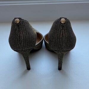 Michael Kors Women's metallic mesh Textured Black and Silver Heels