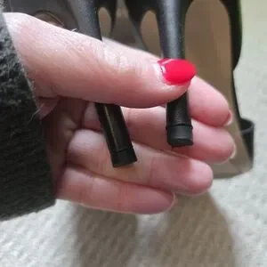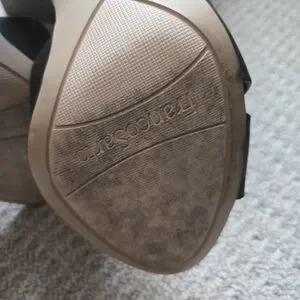 Beautiful and sexy black leather heels with open toe. Size 6, 4" heel. Excellent condition, worn once for indoor event.