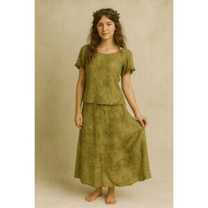 Vintage Crinkle Skirt Set 8 Forest Fairy Grunge 90s Y2K Boho Cottagecore Green