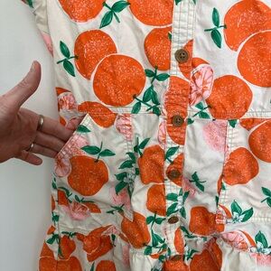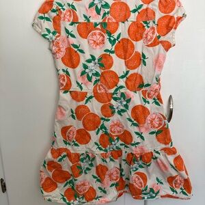 Stylish dress with floral and citrus pattern. Bright and colorful design. 100% cotton guarantees comfort. Functional pockets and all original buttons. Great for spring or summer activities. Never worn, but washed. See photos for condition questions.