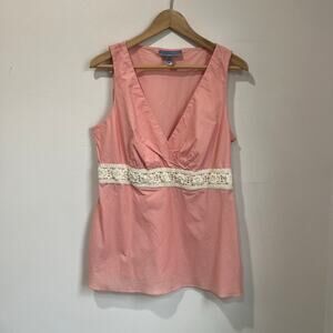 Y2K Nine & Co babydoll-style tank top featuring a flattering V-neck, empire waist, and side zipper closure. Lightweight cotton construction with a soft feminine silhouette.