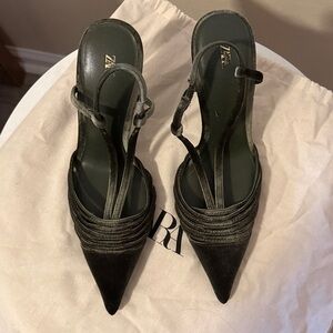 Chic olive heels with elegant straps. Worn once. Pet free, smoke free home. Size 39 (US 8)