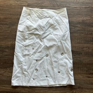 Chic white pencil skirt by XOXO. Features stylish silver ring accents. Perfect for a modern look.