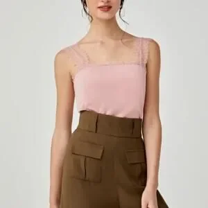 DESCRIPTION: It's all in the details. Delicate lace trims on shoulder straps. Square neckline.