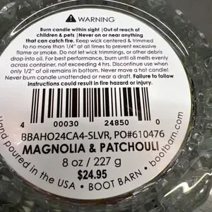 The Magnolia &PATCHOULI Scented Candle is a hand-poured 8oz jar candle made in the USA with high-quality ingredients like oil and soy wax. The candle comes in a charming white glass jar with a decorative design, perfect for adding a nature-inspired touch to your home. With multiple wicks and a delightful scent, this candle is ideal for creating a cozy atmosphere in your entryway, bathroom, living room, or any indoor space during the holiday season or any time of year.
