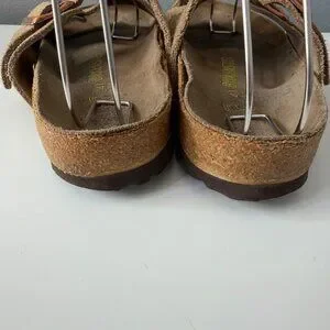 Pre owned, good condition. Some light foot marks on the footbed and some cracking in the cork. See photos for accurate depiction of condition.