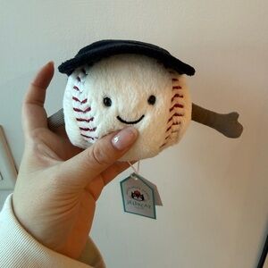 Delight your child with the Jellycat Amuseables Sports Baseball Plush Toy. This adorable plush features a charming white baseball design with a cute black cap. Perfect for cuddling and imaginative play.