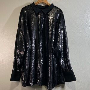 Future Collective Black Sequin Kahlana Barfield Brown Button Down Shirt sz 3X