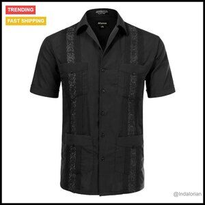 Men's Cuban Guayabera Shirt Short Sleeve Button Down Relaxed Fit Classic
