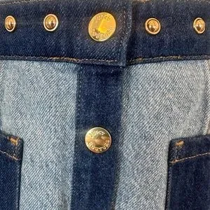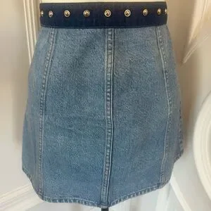 Juicy Couture Y2K Mini Button Up Denim Skirt w/ Gold Studded Details (Size 25)