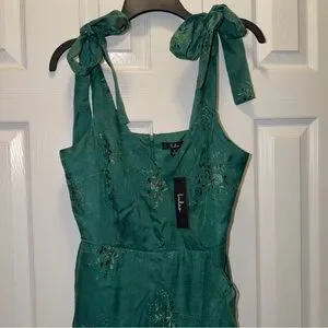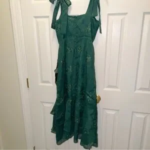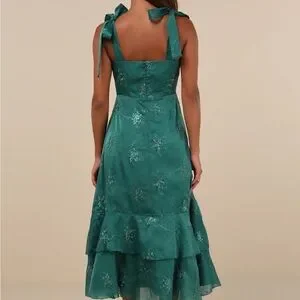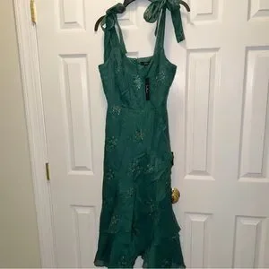 NWT ($79.00) Lulus Elegant Green Embroidered Ruffled Tie-Strap Midi Dress