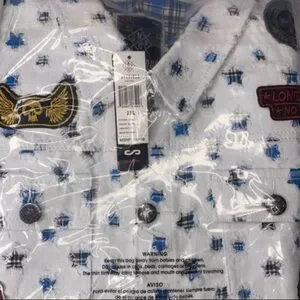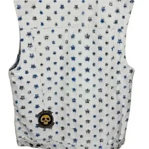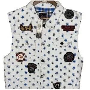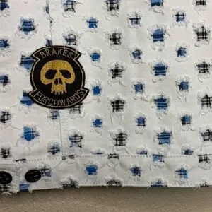 Badass Imperious Men’s Distressed Patchwork Plaid Punk Denim Jean White/Blue Super Cool