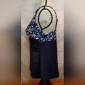 PERONA Women's Plus Size Shaping Floral Blue One Piece Swim Dress Size 20W NWOT