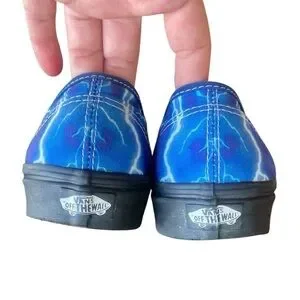 Vans sneakers with electric blue thunder pattern. Black laces and soles.
