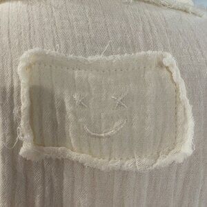 Add a touch of whimsy to your wardrobe with our button down shirt featuring wide chest pockets and contrasting knit sweater sleeves. The oversize fit and raw edge detailing add a playful twist to this classic shirt. Stay cozy in style all day with this double gauze shirt.