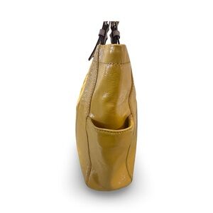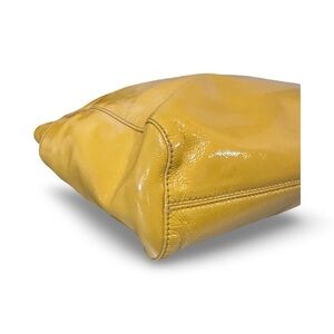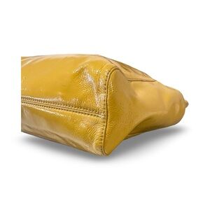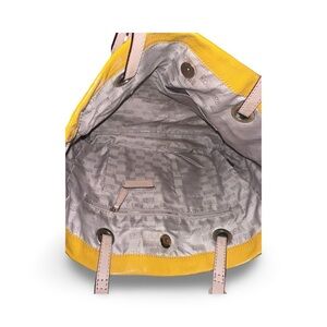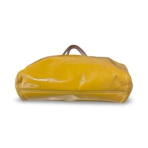 Stylish yellow leather tote bag perfect for everyday use. Features durable handles and a spacious interior. Light color transfer on the back. Clean inside out.