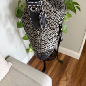 Stylish Coach crossbody bag. Features signature pattern. Adjustable strap. Sleek design. The bag is in great condition leather trim is perfect and inside has no call outs. Very nice bag. 💕 open to reasonable offers