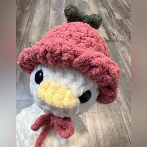 This adorable ducky comes home to you in her sweet little tulip hat! Perfect for springtime or an Easter basket gift! Handcrafted in soft snuggle yarn.