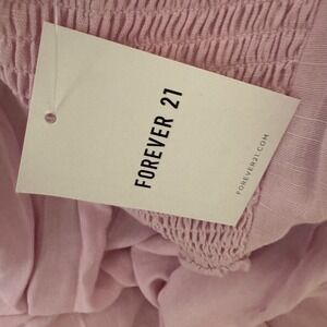 Keywords: Forever 21, mini dress, light pink dress, smocked dress, sundress, tie front dress, sleeveless dress, summer dress, casual dress, flared dress, ruffle straps, women's dress, size L, new with tags
