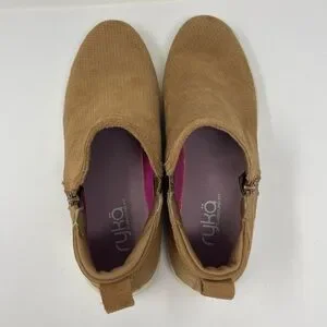 Ryka Shoes Womens 10M Tan Suede Upper Hensley Side Zip Chelsea Booties Sneakers