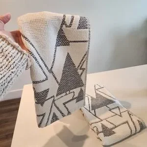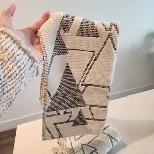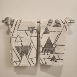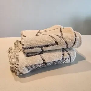 SET OF TWO Blayne Ivory And Black Abstract Geo Hand Towels