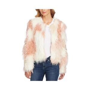Cece Womens Two Tone Shaggy Faux Fur Jacket Size XL