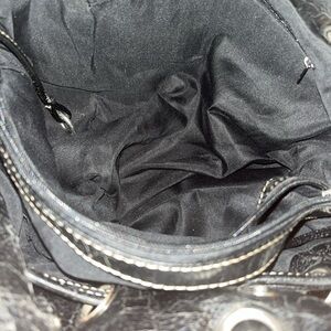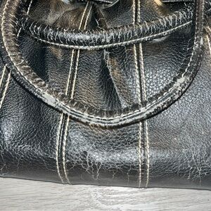 Vintage Juicy Couture purse has peeling on handles and small amounts on other parts if the bag. But inside is clean.