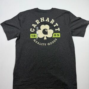 Charcoal short sleeve tee. Features bold Carhartt graphic on back. Soft and durable fabric.