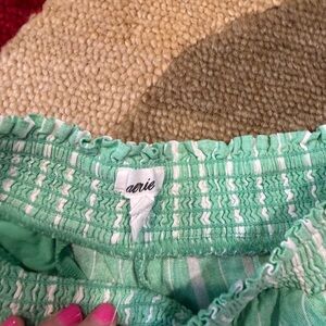 NWOT Aerie Linen Blend High Waisted Shorts Green White Smocked Waist Size Small