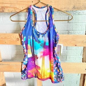 NWT Trina Turk recreation palm tree tropical print sports athletic tank top