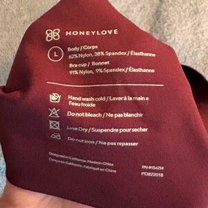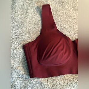 HoneyLove Burgundy Bra in Size Large. This bra has no underwire, but does have bones on both sides. Padded, seamless support, v-neck. Hand wash cold, item is in good pre-owned condition.