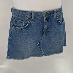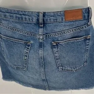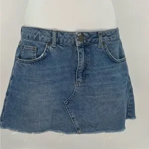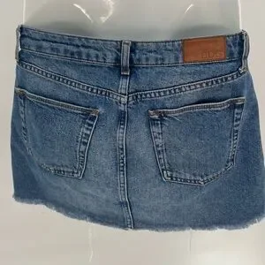 This stylish denim skirt is designed in a medium wash that gives it a trendy look and is perfect for any casual occasion. It features a unique raw frayed hemline that adds a touch of edginess to your outfit. The skirt has five pockets that offer a practical and convenient storage solution for your essentials. Made of 100% cotton, it provides exceptional comfort and durability. Measuring 15" waist and 14" length lying flat, it fits perfectly and accentuates your curves. The skirt is in excellent condition, making it a great addition to your wardrobe. The brand of this skirt is BDG Urban Outfitters, known for its high-quality and stylish clothing.