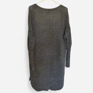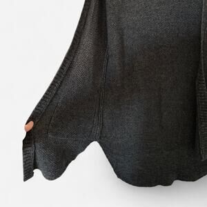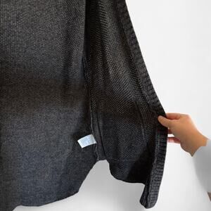 This is a women's open front cardigan sweater by American Eagle Outfitters, It features a dark gray knit design, perfect for layering on cooler weather.
