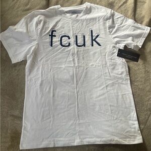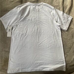 Classic white tee with bold navy logo. Soft and comfortable. Ideal for casual outings.