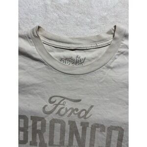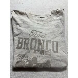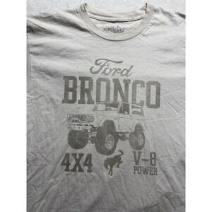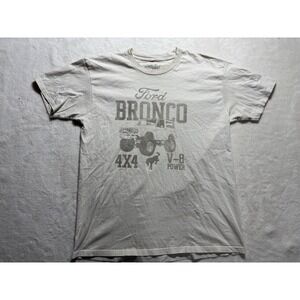 The product is a men's Ford Bronco 4x4 V-8 short sleeve T-shirt in size L. It features a white color with a design related to Ford vehicles, making it a stylish and comfortable choice for fans of the brand. The regular fit and short sleeve style make it a versatile piece that can be worn casually or during outdoor activities.