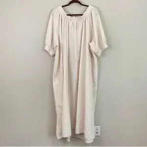 NAP Cream Tie Back Short Puff Sleeves Poplin Oversized Maxi Dress Size Small