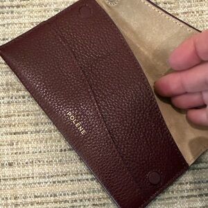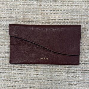 Elegant burgundy leather wallet by Polène. Features a sleek design.