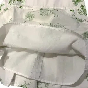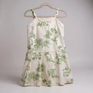 Adorable Y2K-era Amy Byer sundress in girls size 6. Made of soft 100% cotton with a charming green floral and butterfly print on a crisp white background. Features spaghetti straps, a tiered skirt, and a cute tie-back design. Fully lined for comfort.