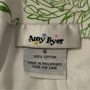 Amy Byer Girls Size 6 Y2K White Sundress Green Butterfly Floral Print