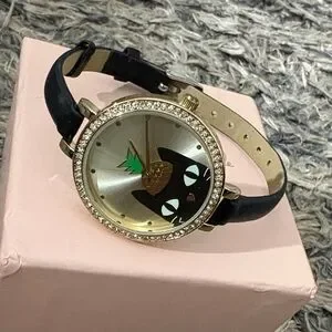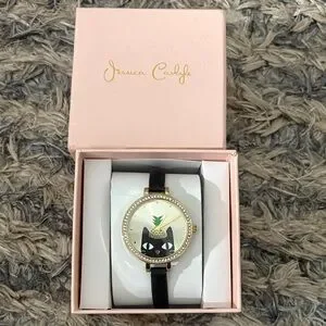 Jessica Carlyle Cute Black Cat Watch with Crystals Allaround Gold Hardware New
