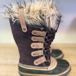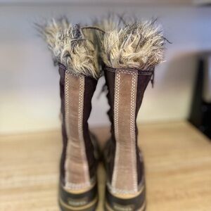 Sorel Black and Brown Faux Fur Trim Boots